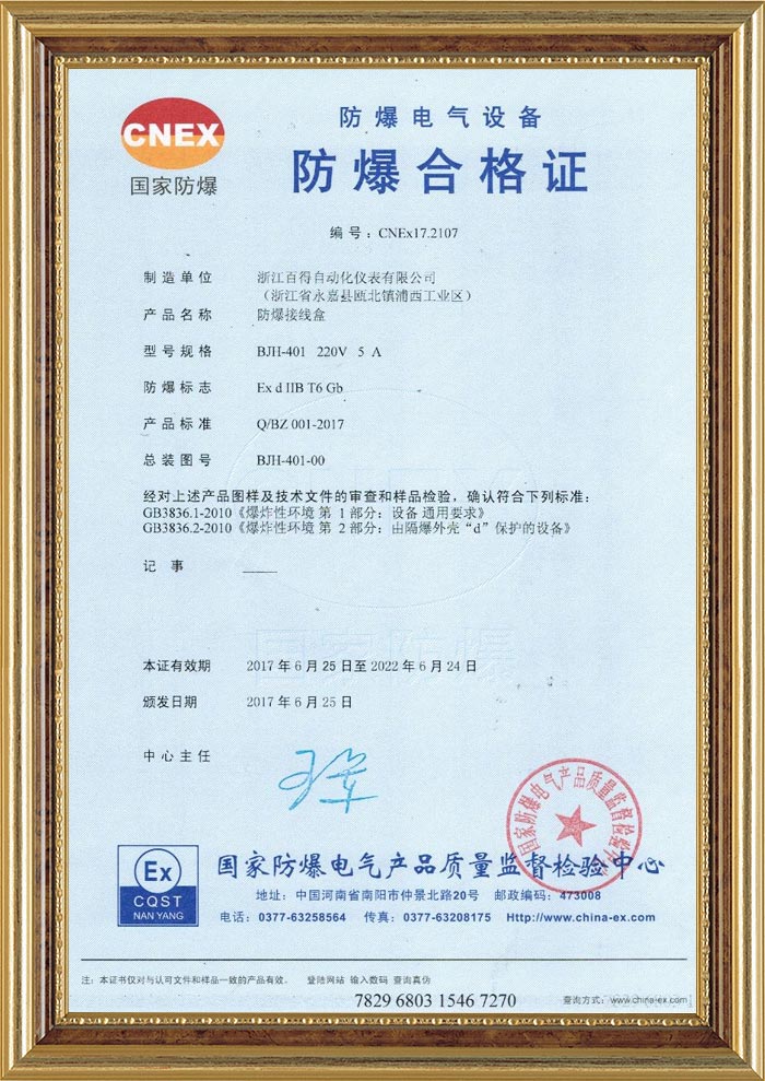 BJH-401防爆接線盒防爆合格證